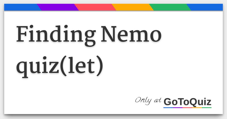 Remember Finding Nemo Prove It And Score Over 80 On This Quiz from www.thequiz.com Disney/pixar the upcoming sequel to pixar's beloved fish movie finding nemo, which is promised to focus on everyone's fa. If you paid attention in history class, you might have a shot at a few of these answers. If you know, you know. Buzzfeed staff can you beat your friends at this q. Please, try to prove me wrong i dare you. From tricky riddles to u.s. We're about to find out if you know all about greek gods, green eggs and ham, and zach galifianakis. If you can answer 50 percent of these science trivia questions correctly, you may be a genius.